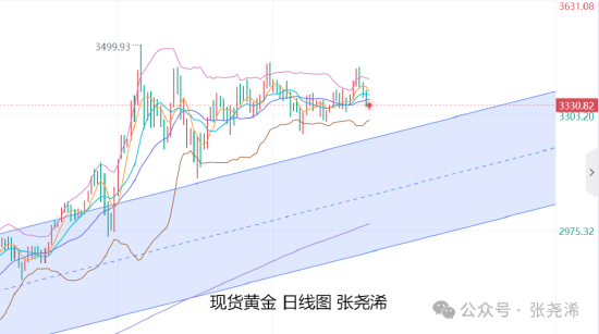 不过,目前走势仍运行在5月均线上方,以及保持在之前上行趋势通道之上,多头趋势依然保持不变,那么后市有望再度走强攀升,或维持3000-3500美元区间震荡数月;